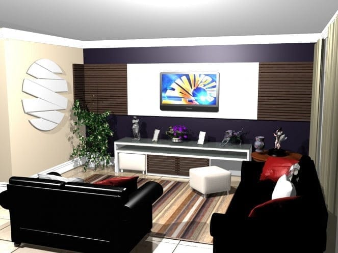 Os móveis que devem ser colocados em uma sala, são: dois sofás, puffs, mesa de centro, TV, Home Theather, rack ou painel para TV;