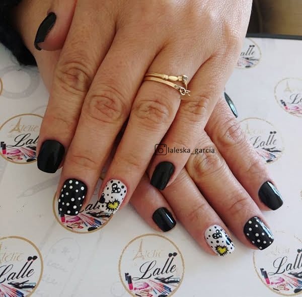 Os poás são adorados em praticamente tudo, e isso também pode ser levado em consideração no que diz respeito a unhas decoradas. Se você gosta de algo com toque divertido e vintage melhor ainda! Aqui você também pode trabalhar com uma boa gama de combinação de tons.