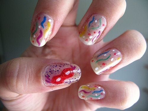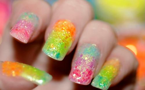 As cores das unhas decoradas para o carnaval 2014 são várias, nas quais estão: vermelho, azul, verde, rosa, laranja, amarelo e lilás, elas também podem trazer bolinhas ou o estilo mosaico com muitas cores.