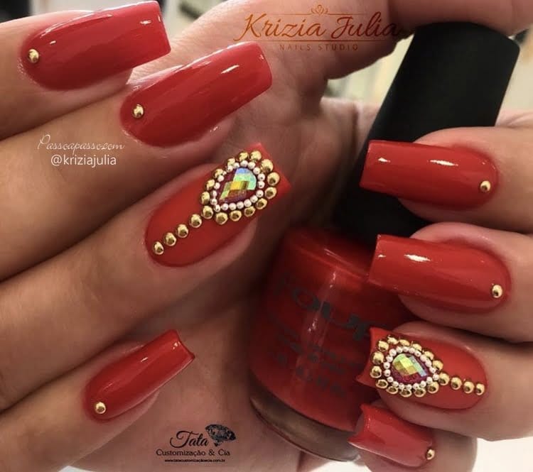 Viu que legal? E olha que esses são apenas alguns modelos de unhas decoradas. Você pode contar com diversas outras opções! Basta um pouco de criatividade e também paciência e você logo encontrará algo que goste. E caso queira algo diferente, é só pegar um modelo de nail art que utilize outras cores e adicionar o vermelho e outras cores da forma como desejar!